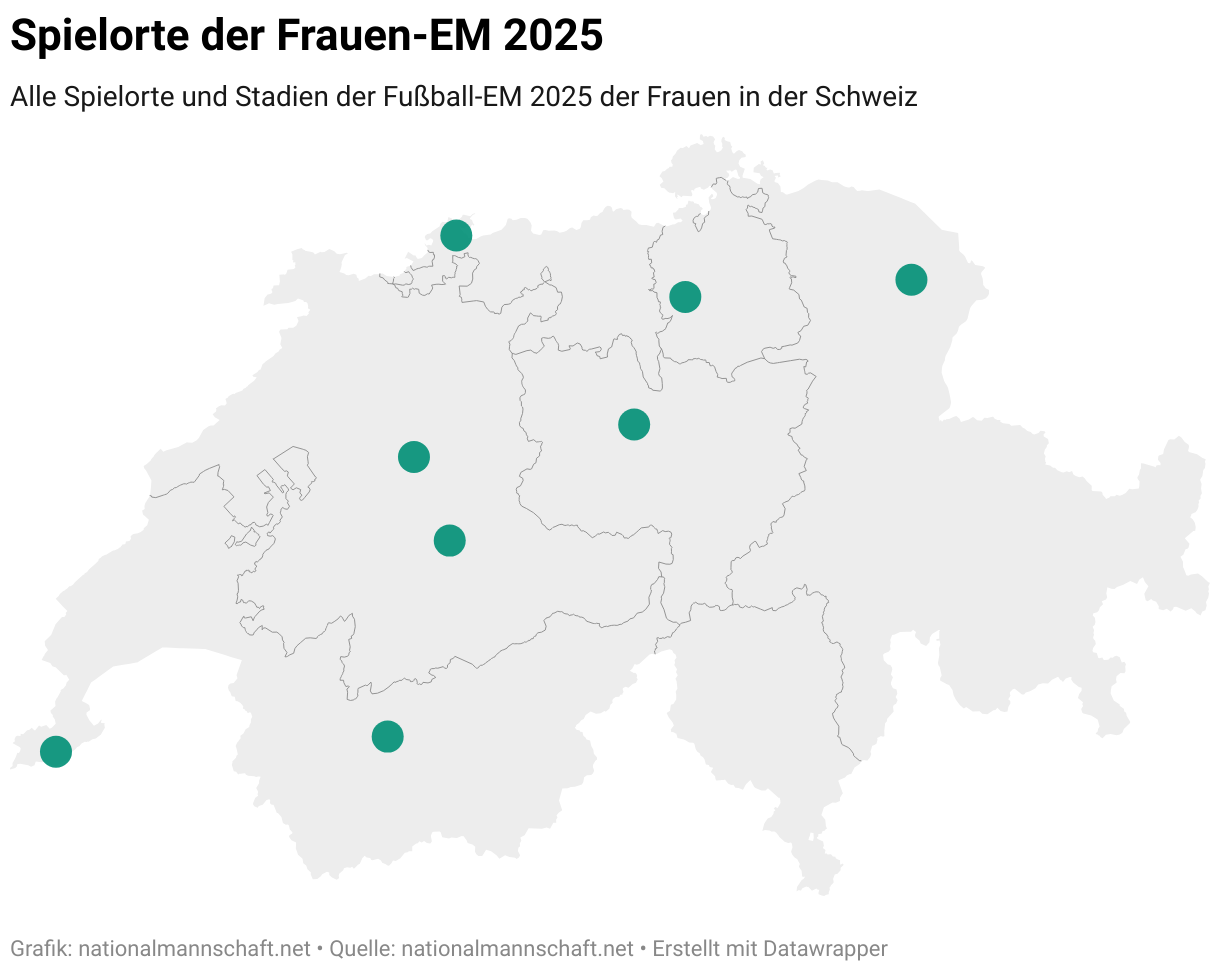 Eine Karte aller Stadien und Spielorte bei der Frauen-EM 2025 in der Schweiz: